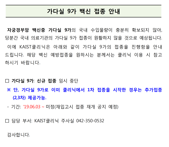그러나 가다실 9가의 경우는 개인이 접종 비용을 부담해야 합니다.
