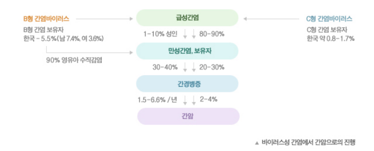 간암은 간세포에 악성 종양이 생긴 것을 말합니다. 주요 원인은 B형, C형 간염, 지난친 음주, 간경화입니다. 간경화는 간염으로 인해 염증이 생기고 없어지기를 반복하여 점점 딱딱해지는 증상을 말합니다. 이는 간의 세포수가 즐어들기 시작하고 간 기능이 저하됩니다. 그리고 이를 방치하면 간암으로 발전될 가능성이 높습니다.