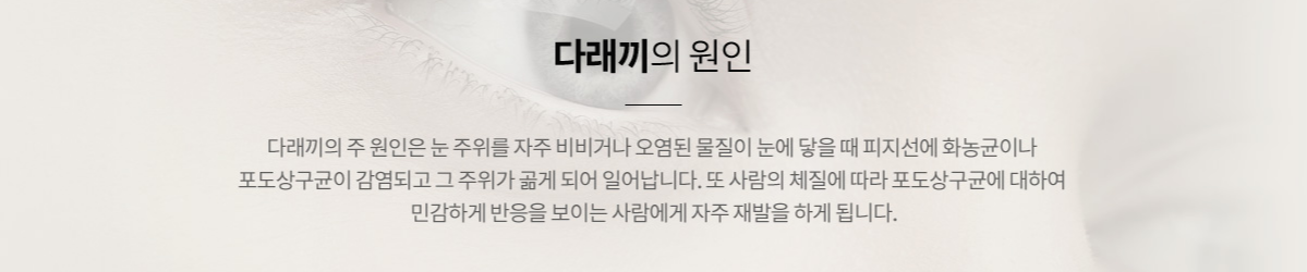 많은 분이 전염성이 있는 것으로 오해하는데 이는 결막염과 증상이 비슷하기 때문입니다.