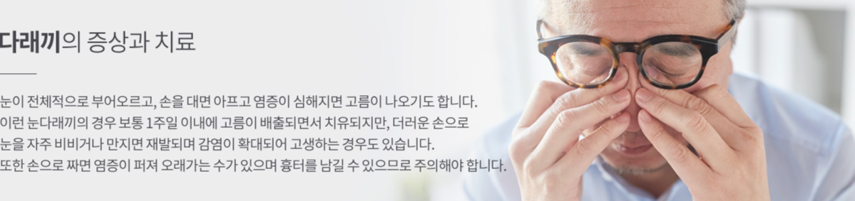 많은 분이 전염성이 있는 것으로 오해하는데 이는 결막염과 증상이 비슷하기 때문입니다.
