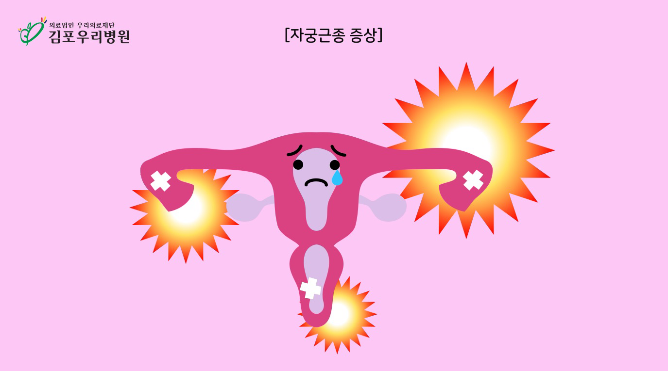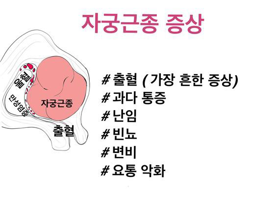 최근 난임의 가장 큰 원인이 자궁근종입니다. 관계 시, 관계 후 생리통과 같은 통증, 약간의 출혈 등 이런 증상이 지속되면 산부인과에 내원해 상담을 받는 것을 추천합니다.