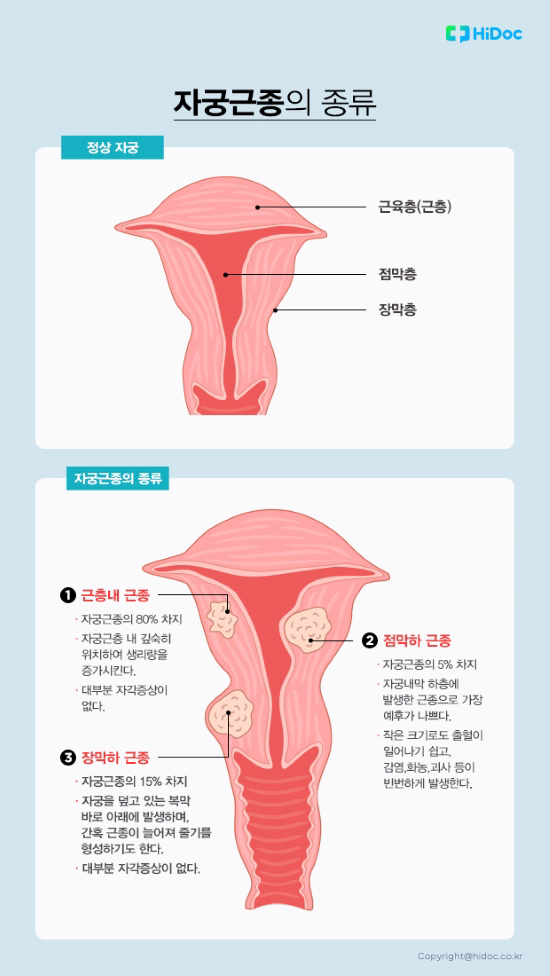 자궁 근종은 여성 대부분이 가지고 있는 흔한 질병이지만 정기적인 검사가 필수입니다. 빠르게 자라거나 통증을 유발하는 경우에는 빠른 치료가 필요합니다.