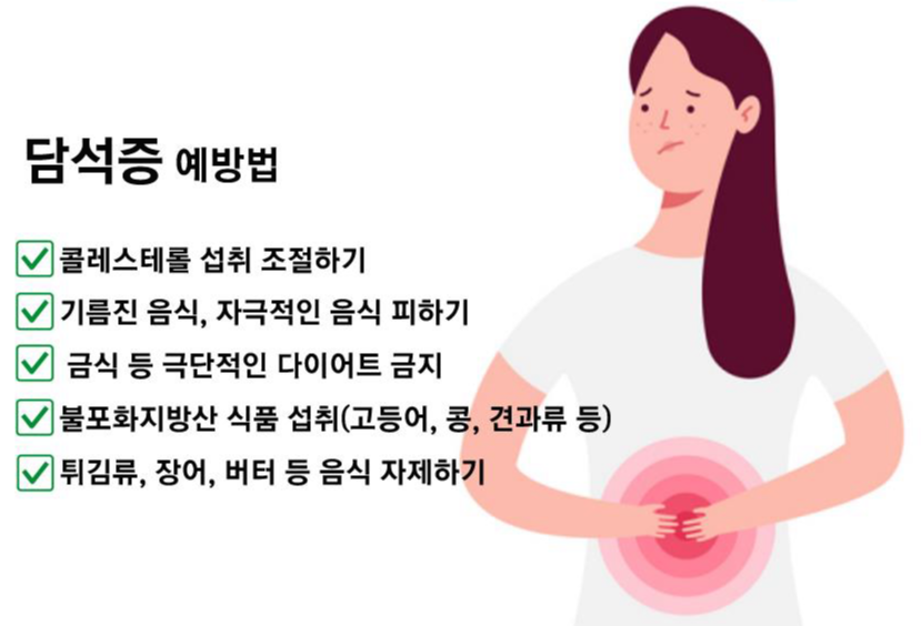 담석은 극심한 통증 뿐만 아니라 소화불량 같은 합병증을 유발할 수 있으므로 치료가 필수적입니다.
