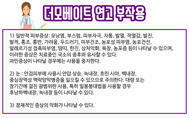지금까지 더모베이트 연고에 대해서 알아봤습니다. 해당 연고는 장시간 사용시 그리고 임산부, 수유부 여성에 특히 주의를 요하는 약입니다. 반드시 사용전 확인하시고 안전하게 사용하기 바랍니다.