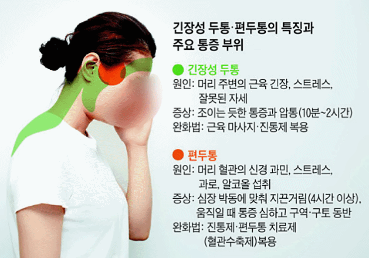 머리가 찌릿찌릿 경험 있으신가요? 저도 그런 적이 많은데요. 특히 목, 어깨가 뻐근할 때 그리고 두통이 있을 때 이런 경험을 합니다. 두통도 여러 종류로 나뉠 수 있는데 머리 어느 부위에 두통