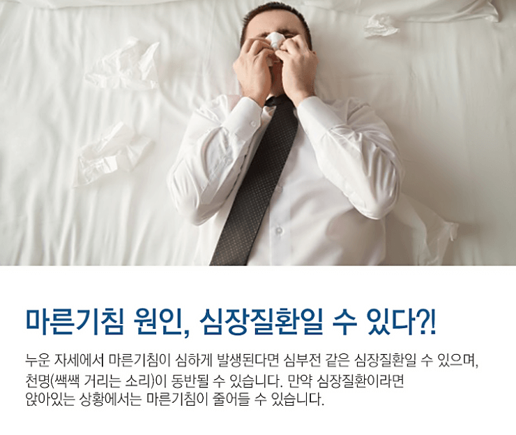 폐색전증은 가슴통증, 호흡곤란 등의 증상과 함께 마른 기침을 동반한다. 폐암 환자의 절반이상이 마른 기침을 하며 흡연을 하고 가족력이 있다면 주기적인 진단이 필요하다.