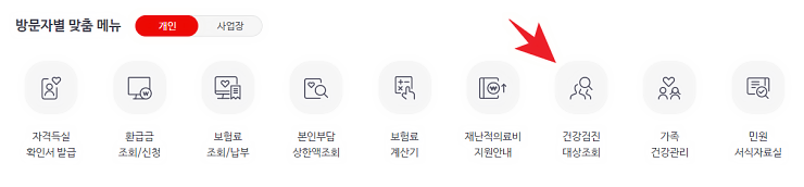 2. 방문자별 맞춤 메뉴 > 건강검진 대상조회