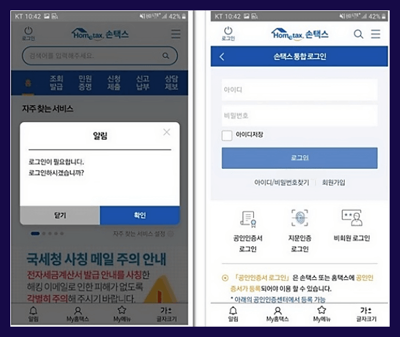 ※ 개인 회원정보를 포함하는 정보이므로 공인(공동) 인증서를 통한 본인인증이 필요하다.