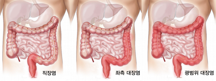 궤양성 대장염은 대장점막에 다발적 궤양이 발생하고 점막이 충혈되거나 붓는 질환입니다. 크론병은 대장 외의 장기에도 발생할 수 있는 것이 특징입니다.
