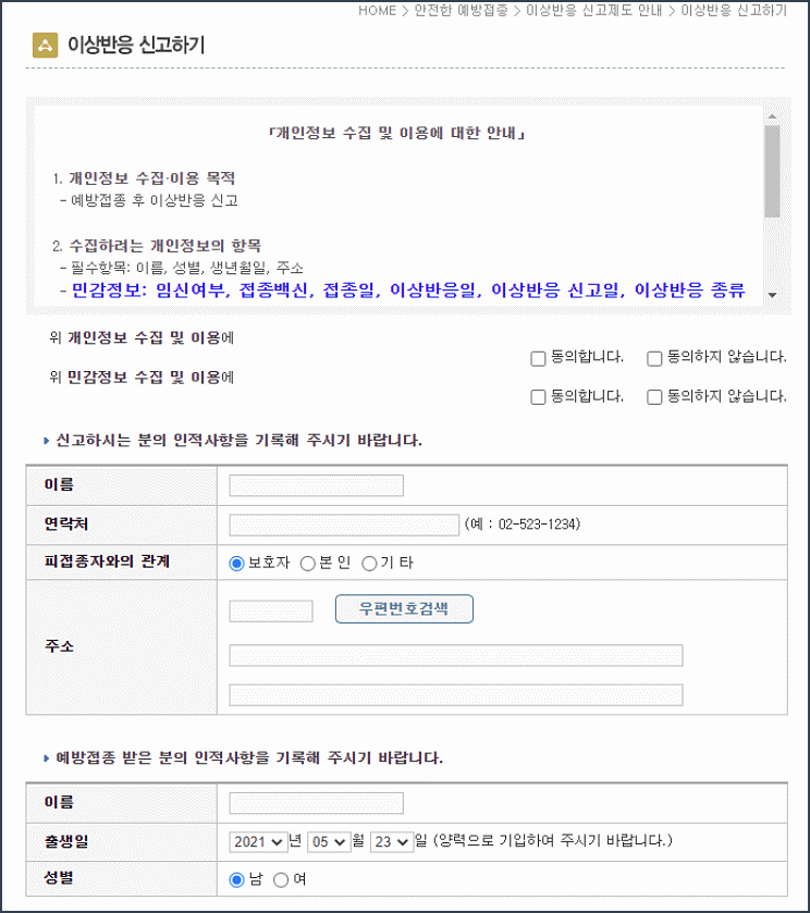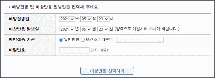 이상 반응이 의심되는 경우는 예방 접종 도우미 웹 사이트를 통해 이상 반응에 대해 확인하고 대응 방법을 안내 받을 수 있습니다.