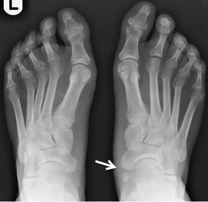 이렇게 튀어나와 있는 뼈는 발 중간의 발등이나 아치에 위치한 작은 뼈 중 하나입니다. 나비 뼈라 불리며 여분의 뼈 중 하나이기도 합니다.