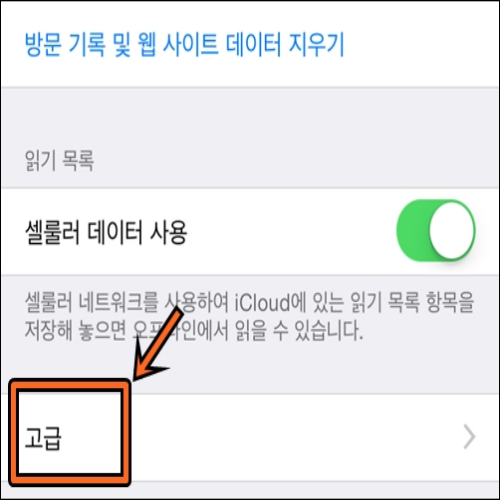 팝업 차단 해제 설정을 완료했지만 문제가 해결되지 않으면 Safari 설정 화면에서 맨 아래의 '고급'구절을 클릭합니다. 고급 화면으로 이동하면 웹 사이트 데이터 및 JavaScript, 웹 속성 등의 범주가 나타납니다. 이 범주는 "JavaScript"항목을 클릭하여 사용할 수 있습니다.