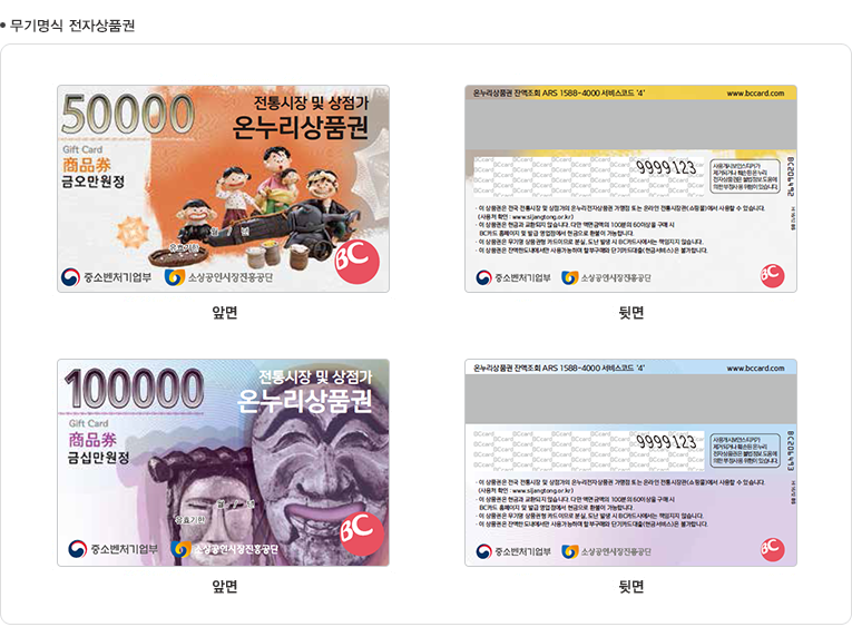 지방 정부 로고가 있는 상품권은 전국의 제휴 재래시장에서 사용할 수 있습니다.