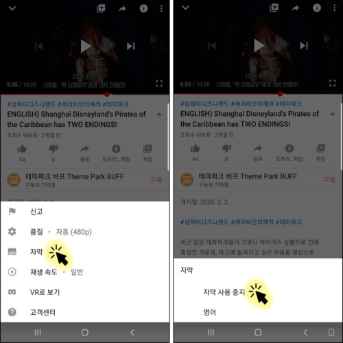 유튜브 자막 끄기