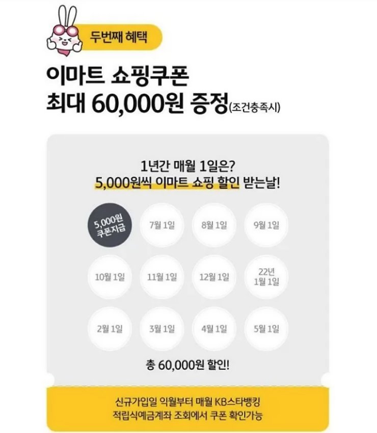 - 매월 납입시 이마트 5천원 할인 쿠폰 제공