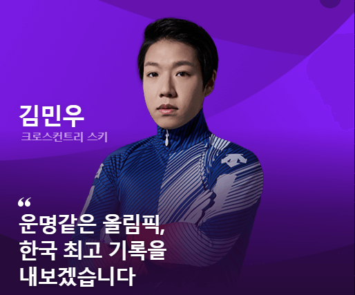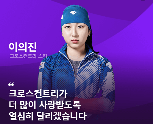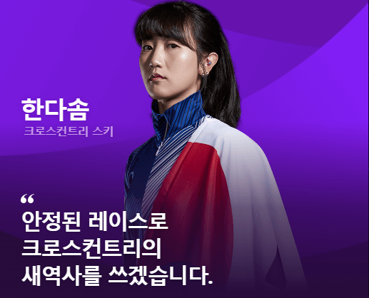 크로스컨트리 경기는 강한 정신력과 체력이 필요한 경기입니다. 그만큼 우리가 많은 응원과 성원으로 힘을 보태야합니다. 김민우, 정종원, 이의진, 이채원 그리고 한다솜 선수 많은 응원 부탁드립니다.