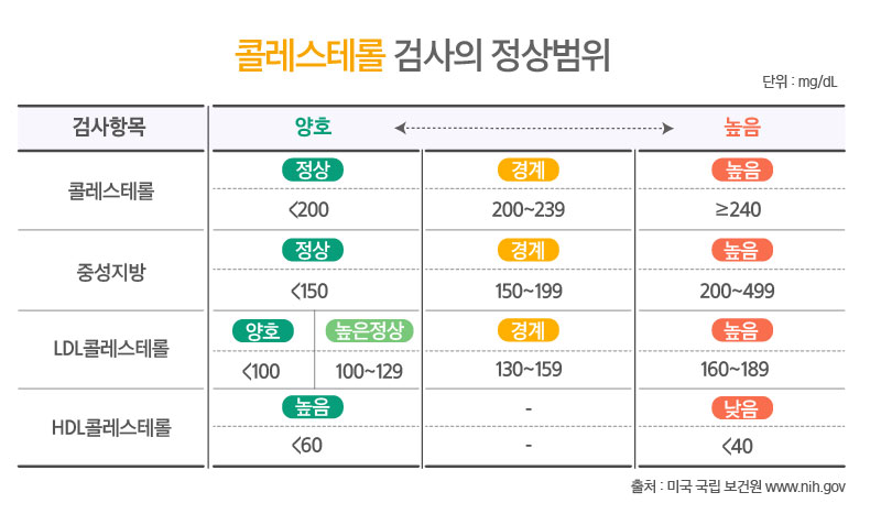 이 두가지의 수치를 합쳐 콜레스테롤 수치를 결정합니다.