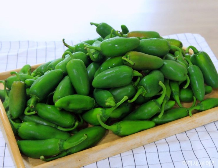 할라피뇨는 멕시코 고추로 청양고추보다 더 맵습니다. 청양고추의 매운맛과는 약간의 차이가 있습니다. 깨무는 순간 매운맛이 전해지는 청양고추와는 달리 할라피뇨는 서서히 매운맛이 올라옵니다.