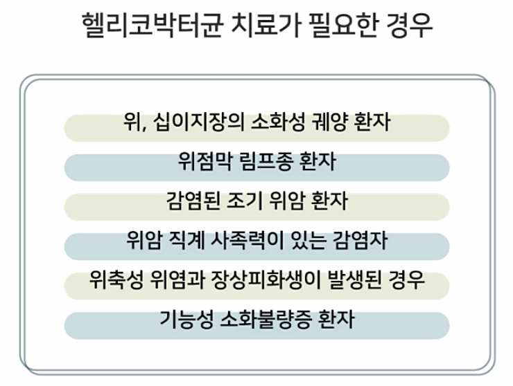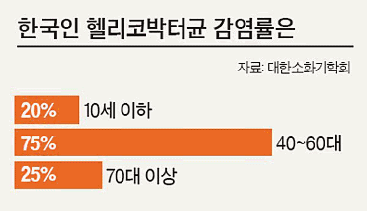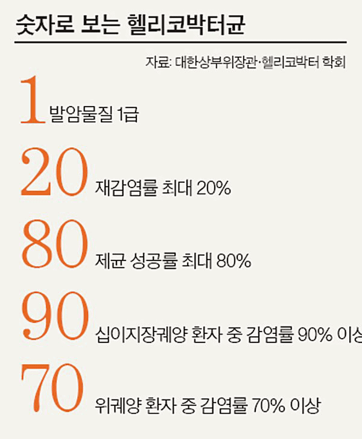 우리나라 전 국민의 46.6%, 성인은 70% 정도가 이 균에 감염되어 있습니다. 보통 모두 치료를 받아야 하는 것은 아닙니다. 내시경으로 진찰을 한 후 전문가의 소견에 따라 치료가 결정됩니다. 보통 소화성 궤양 환자, 위점막 림프종 환자, 초기 위암 환자, 위암 직계 가족력이 있는 감염자, 위축성 위염과 정상피화생이 발생된 경우, 기능성 소화불량증 환자 등이 치료를 받아야 합니다.