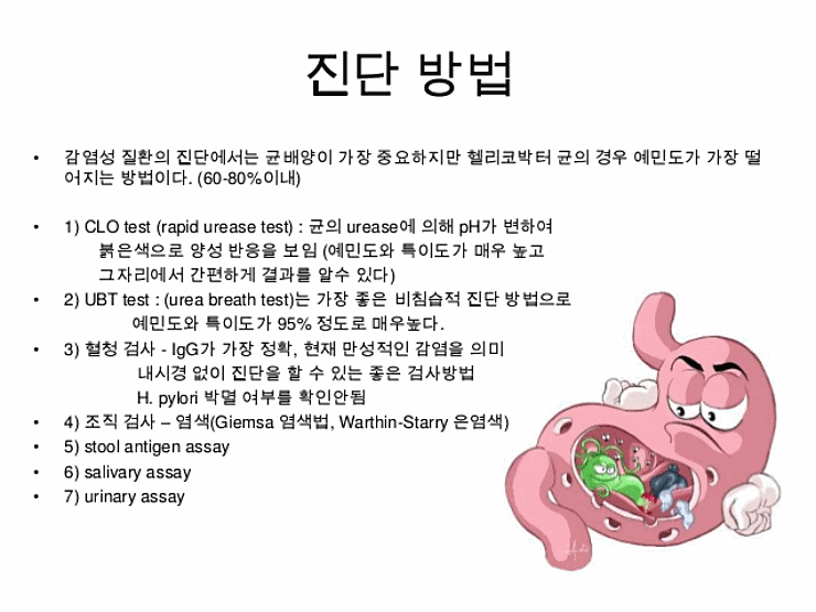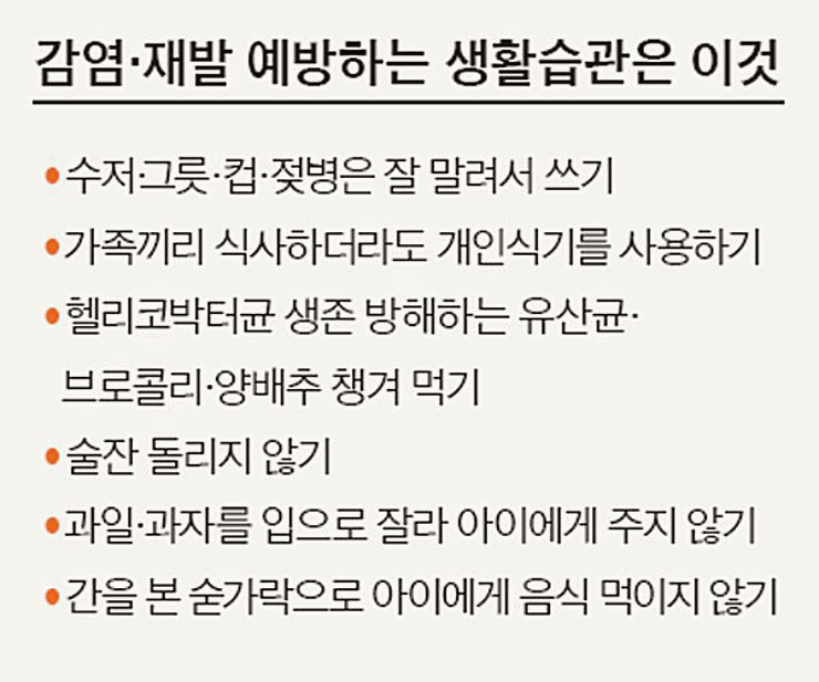 다행인 점은 헬리코박터균을 발견했다면 95% 이상 약물로 완벽히 치료가 가능합니다. 치료 동안에는 특별한 식이 조절이 필요 없어 편리합니다. 헬리코박터균을 박멸한다는 요구르트는 그 효과가 미미하고 병원에서 처방하는 제균 약이 훨씬 효과적입니다.