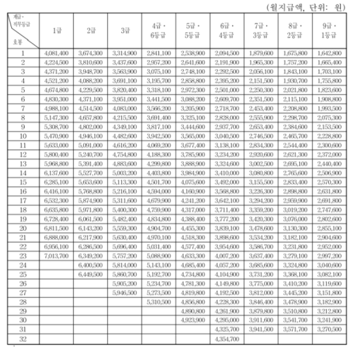 2020 공무원 호봉표