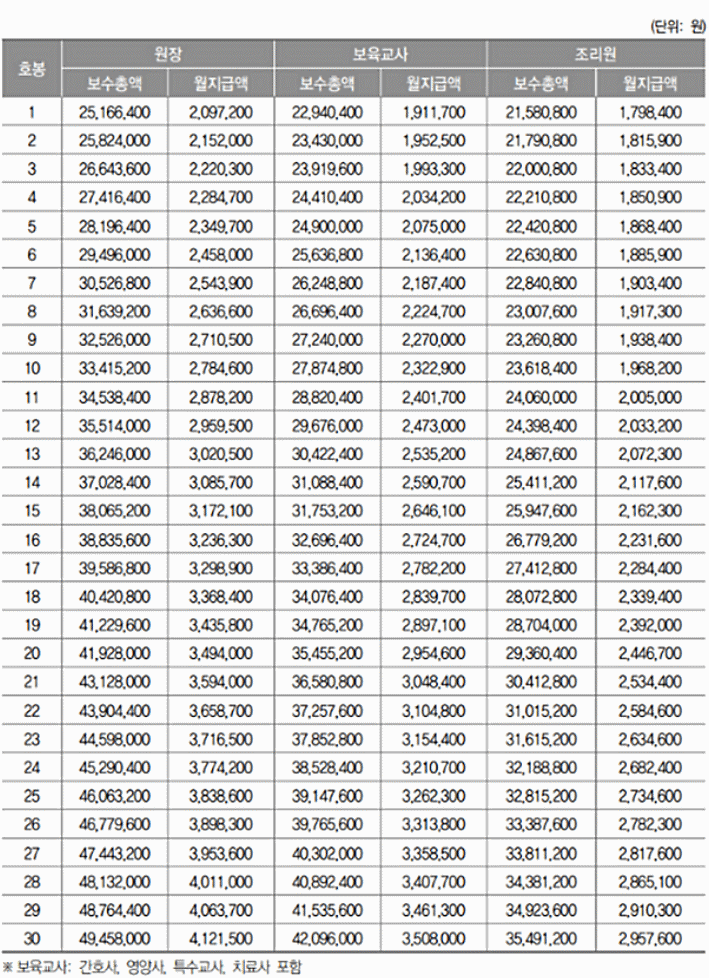 2021년 보육교사 호봉표를 결정난 공무원 임금 인상률로 확인할 수 있습니다. 지난 8월 공무원 노조와 정부가 공무원 급여 인상률를 놓고 의논한 결과 8월 중순 2021년 공무원 임금 인상률을 결정했습니다. 이 인상률을 바탕으로 2021년 예산안이 편성되므로 보육교사를 포함한 모든 공무원의 호봉표를 예측할 수 있습니다.