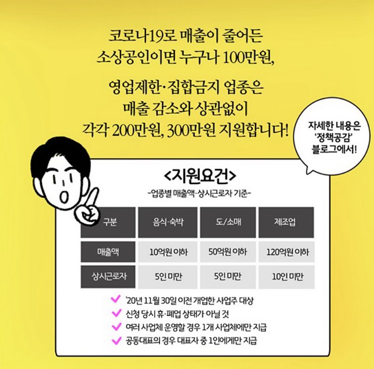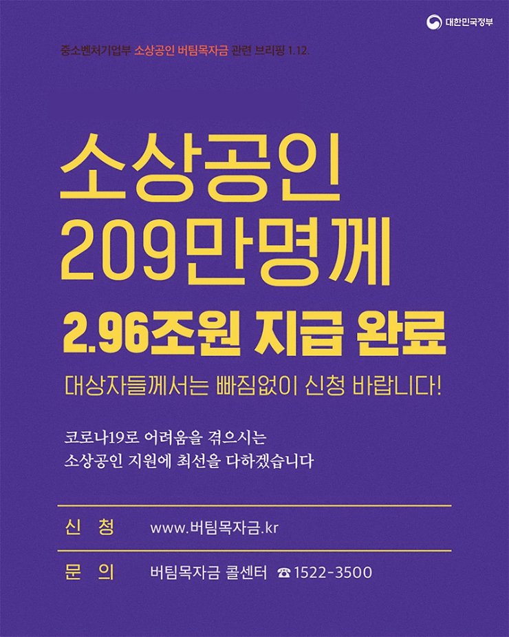 그중 기존 버팀목 자금 지원에 이어 6조 7천억 원 규모의 버팀목 플러스 자금이 가장 눈에 띕니다. 코로나 19로 인해 경제 직격탄을 맞은 약 380만 개 소상공인 업체가 그 대상입니다. 근로자 5인 이상과 일반업종도 매출한도 10억까지 상향되어 지원폭이 대폭 넓어졌습니다.